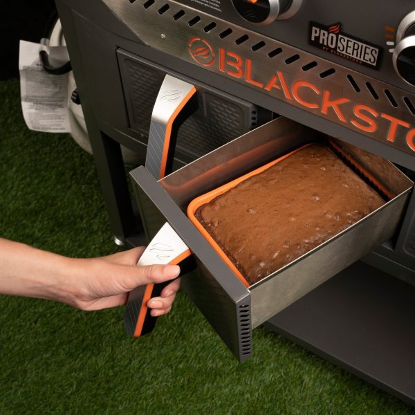Air Frying food with your Blackstone just leveled up. This 2-Piece Air Fryer Baking Kit includes one baking sheet and one baking tray. Both items have been designed specifically to fit in the Air Fryer drawers of your Blackstone Griddle. It’ll give you that coveted golden brown crisp on your favorite cakes. brownies. pull apart bread. lasagna rolls. and more! The tray and sheet protect your Air Fryer drawer while you create culinary masterpieces to share with the masses.