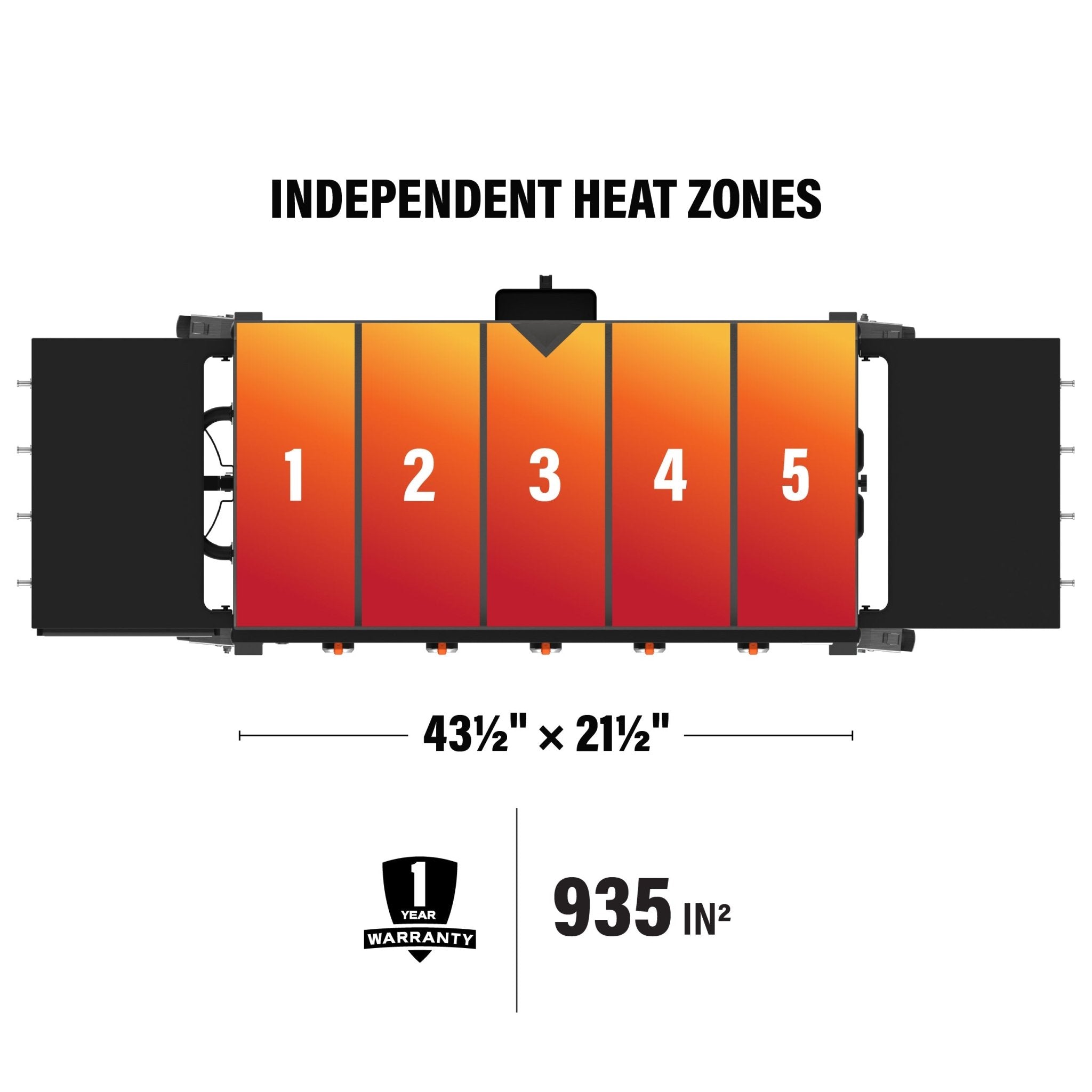 The Blackstone Original 44” Griddle with Hard Cover is perfect for serving mountains of food for your family or for any event. Equipped with a 44” Omnivore Griddle Plate for better heat distribution and fuel efficiency and five independently controlled heat zones. you’ll be cooking breakfast. lunch. and dinner for the entire neighborhood. With folding side shelves for extra prep space without sacrificing storage space and a magnetic toolbar for holding your griddle gear. you’ll have everything you need for any meal. Complete your backyard kitchen with the 44″ Griddle with Hard Cover!